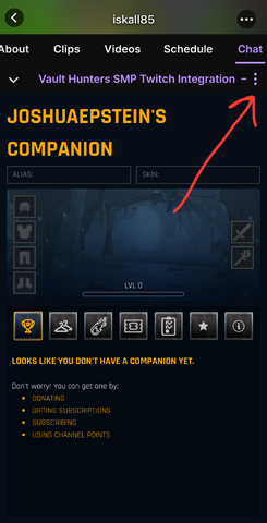VHSMP Twitch Mobile Extension; Open Settings Arrow