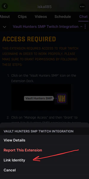 This Twitch Extension offers an exciting and immersive way for viewers to engage with the Vault Hunters SMP Minecraft experience. Designed specifically for VHSMP streamers, this extension allows viewers to access and interact with their in-game Companion data directly from the Twitch platform.